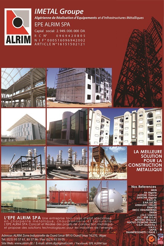 -Réalisation, en tous corps d'état, de construction en structure métallique légère par l'association de la charpente lourde, l'acier léger, profilé laminé à froid PAF, les panneaux en magnésium (mag bord), la mousse et d'autres produits de construction spécifiques).